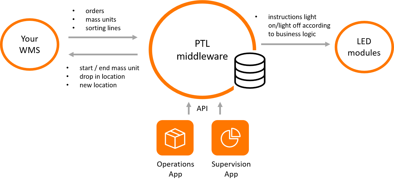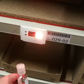 Put-to-Light (or PTL) is a support technology for this type of process: LED modules light are attached to the shelves or to picking the cart, and lights on to direct the logistics operator on where to drop the goods.